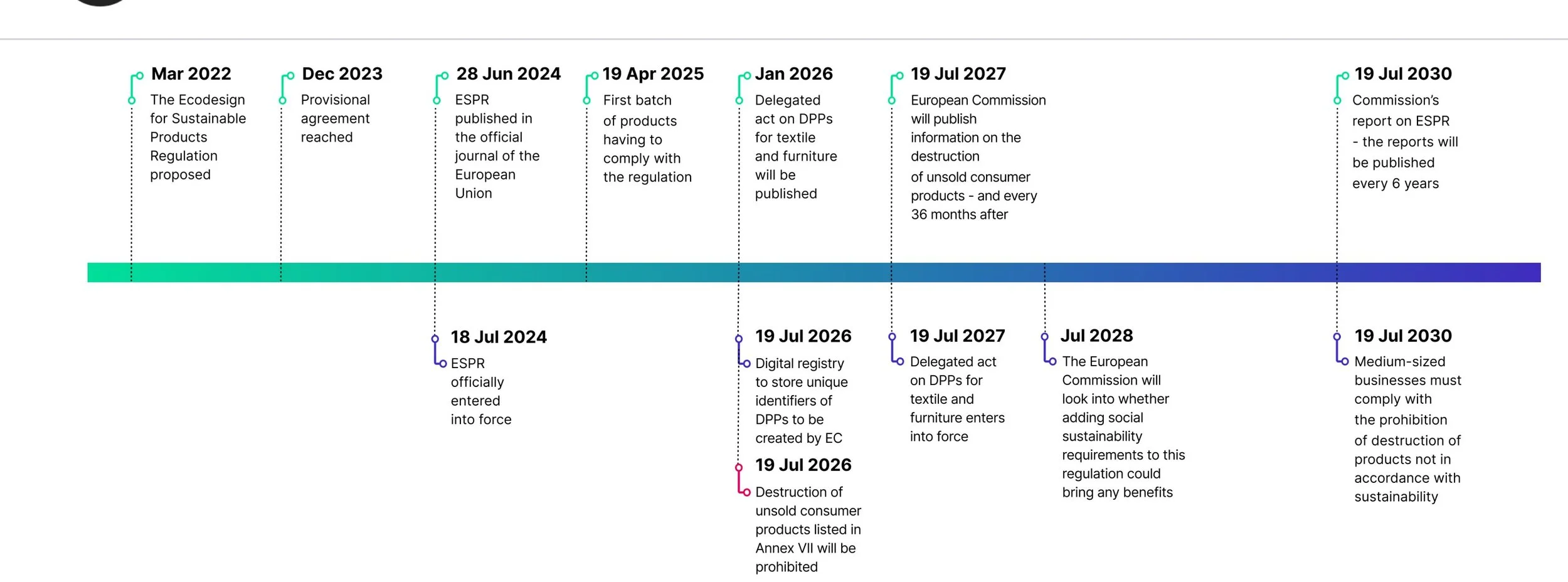 From numerous EU legislative acts and initiatives, many industries have been reviewed and prioritized to be part of the first wave to adopt DPP’s. On 4/16/25 the EU published an update for the 2025-2030 working plan and can be found at this link: ESPR+2025-2030+working+plan.pdf